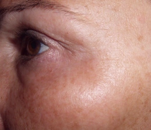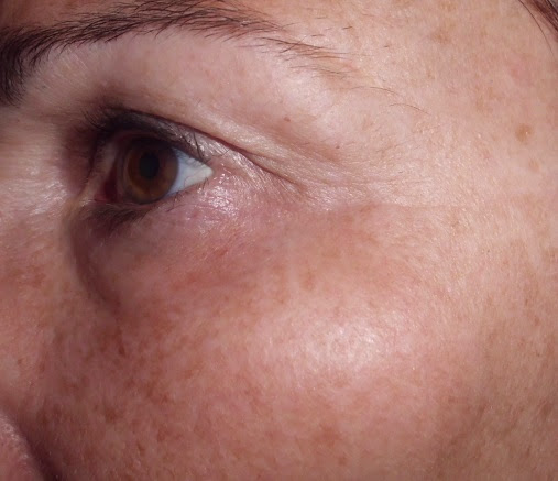 La piel se ve más luminosa, tersa, sin arrugas y bonita. En la foto de arriba no llevo este serum todavía, en la de la derecha ya lo llevo.