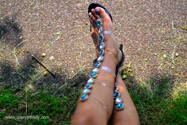 ¿Qué os parecen mis nuevas sandalias de gladiador XXL con incrustaciones joya en tonos azules y plata de tubellezaaqui.com? ¿No os recuerdan un montón a las que en su día creó Rihanna para ManoloBlahnik? Una colección que se convirtió en viral... Y no es para menos, ya que la cantante y el diseñador reinventaron las sandalias veraniegas con piedras allá por el 2017.