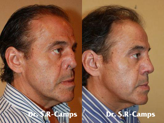 Rinoplastia en nariz con punta caída: Puede ser causa de múltiples factores y en ocasiones requiere colocar un injerto en la columela y cambiar la tendencia del cartílago alar recortando la parte superior de los mismos o incluso seccionando el musculo depresor nasi.