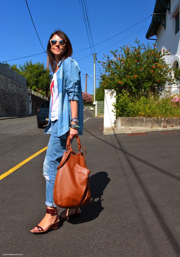 Ripped jeans: Mango; Camisa/Shirt: Bershka; Camiseta/t-shirt: Jota+ge; Sandalias/Sandals: Zara