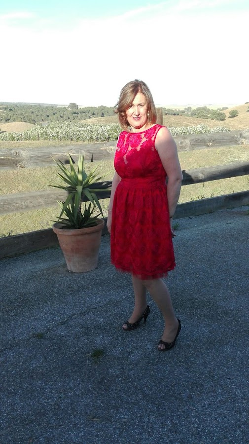 Este que luce mi gran amiga Paqui tiene un largo que favorece mucho. Es de encaje y ceñido a la cintura.
