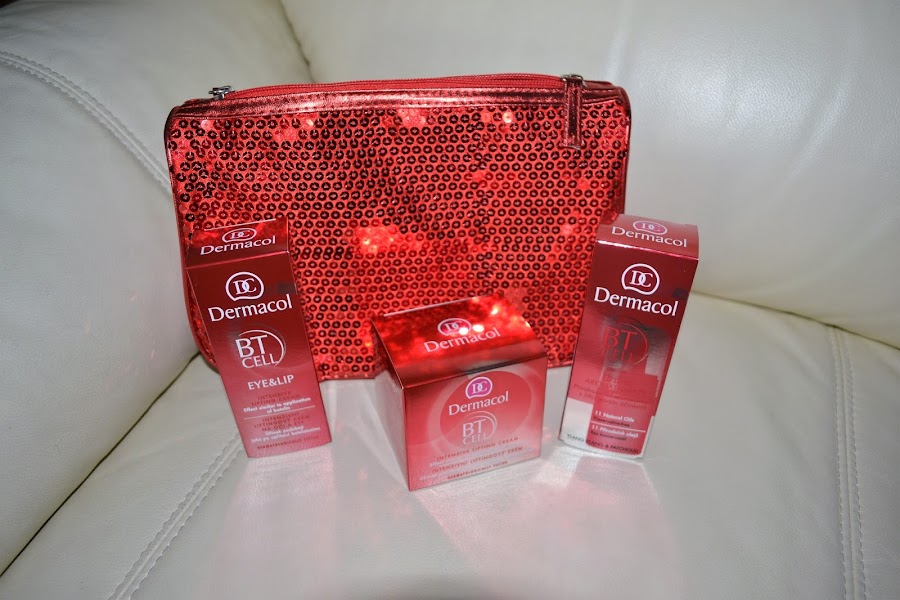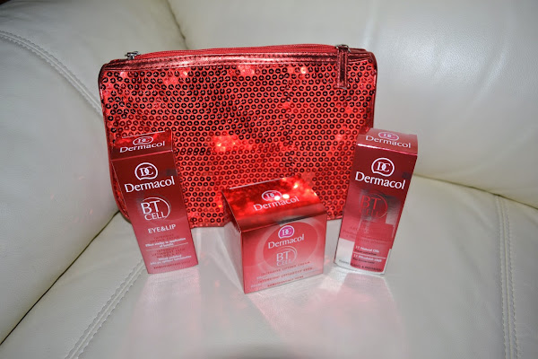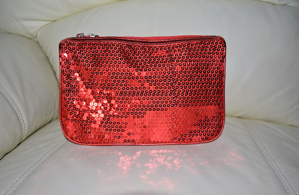Además había una promoción y al comprar la crema hidratante junto con la crema contorno de ojos te regalaban este precioso neceser que yo vi tan navideño, con este color rojo tan bonito y además de lentejuelas, me encanta, creo que lo utilizare como clutch en alguna ocasión.