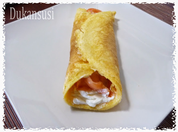 unas gotas de aceite Hacer la tortilla redonda y fina. Enrollar el salmón y untar el queso, rico rico!
