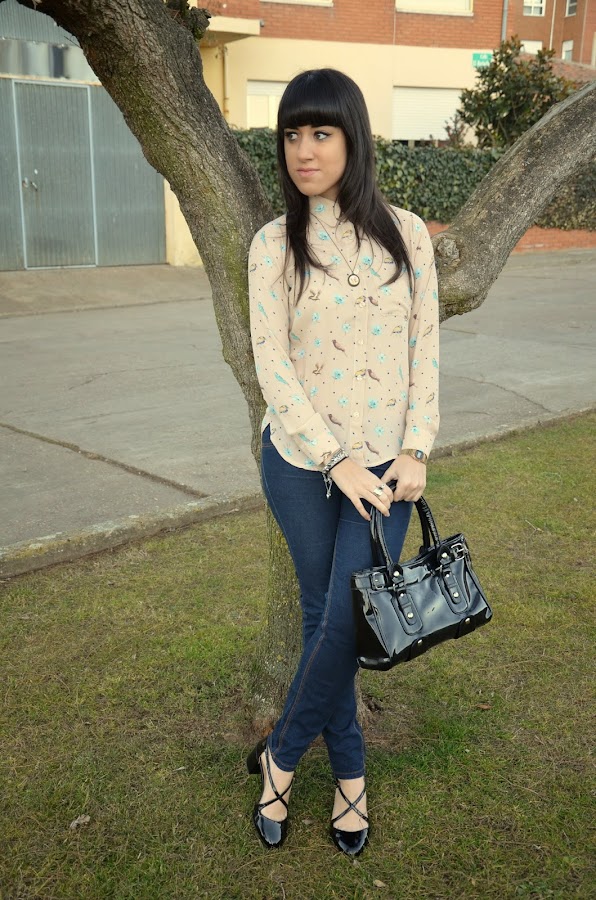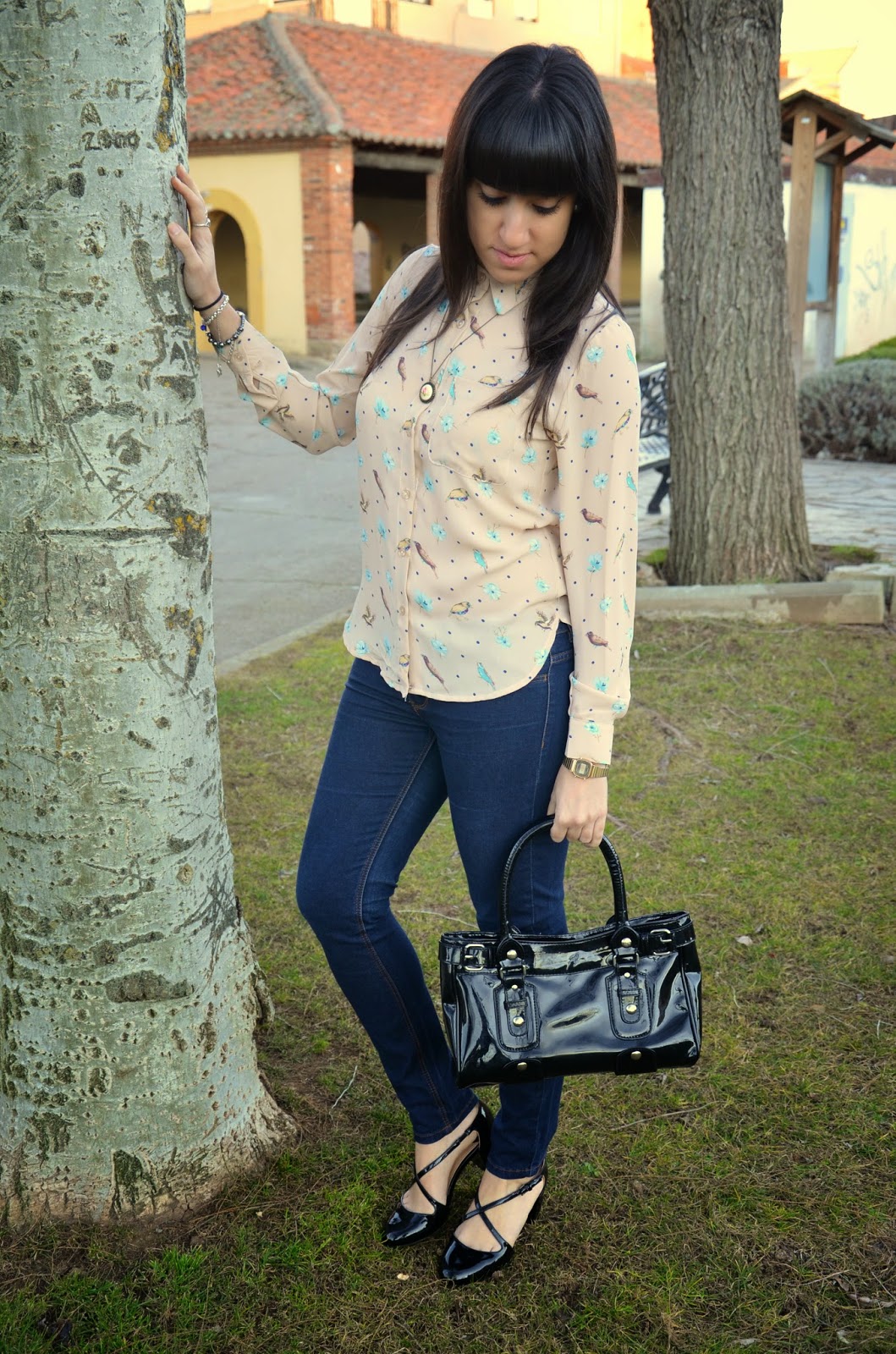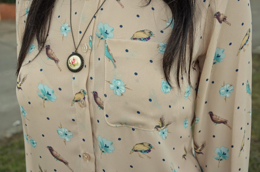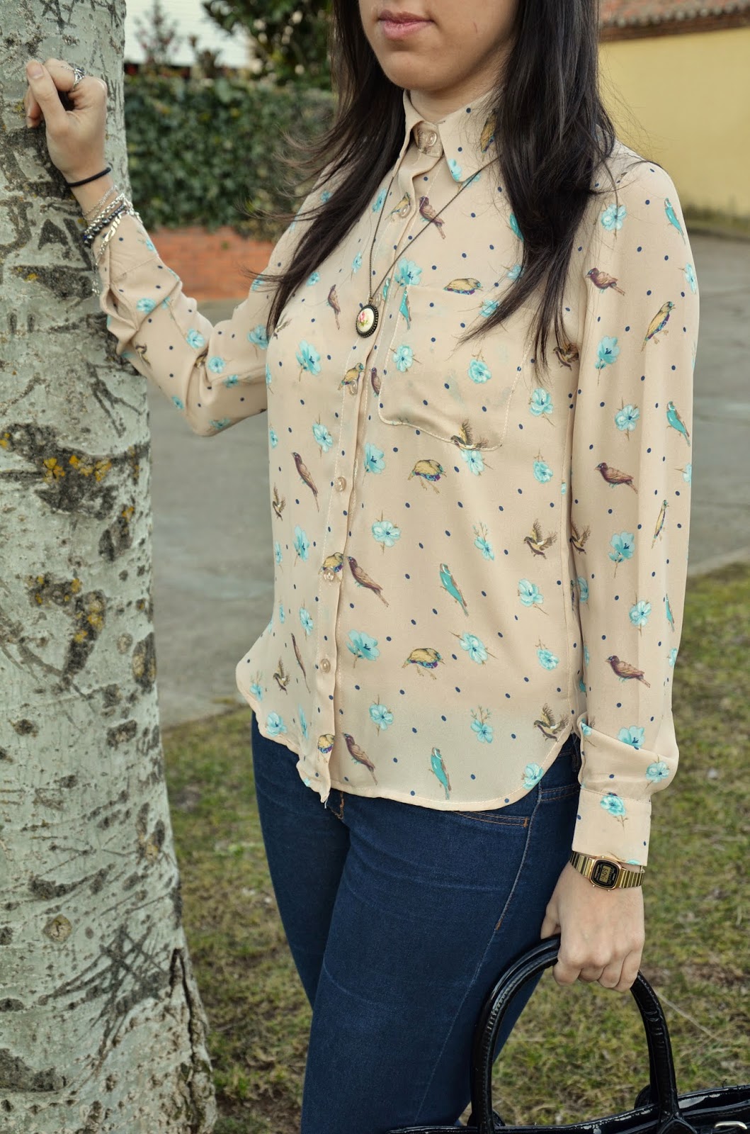 Si de algo me he provisto estas rebajas ha sido de blusas, tienen unos estampados tan bonitos que no me he podido resistir a hacerme con unas cuantas y la protagonista del outfit de hoy es la primera que pedí. Esta blusa es de la tienda online Oasap, de estilo romántico con estampado de flores y pájaros.