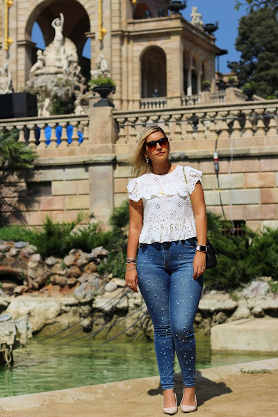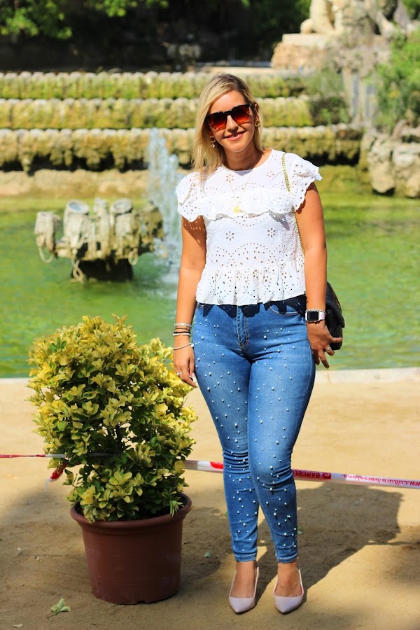 Today I show you a casual chic outfit that is the kind of outfits that like me more and use to wear daily. In the outfit of the day, I wear my new white blouse with ruffles of Lovely Pepa Collection, which is one of my favourite clothing brand because it has exclusive clothes and then, you know that you wont find somebody with the same garment. I wear it with my jeans with pearls, beige stilettos and my black bag with pins. A perfect outfit to wear in infinite situations.