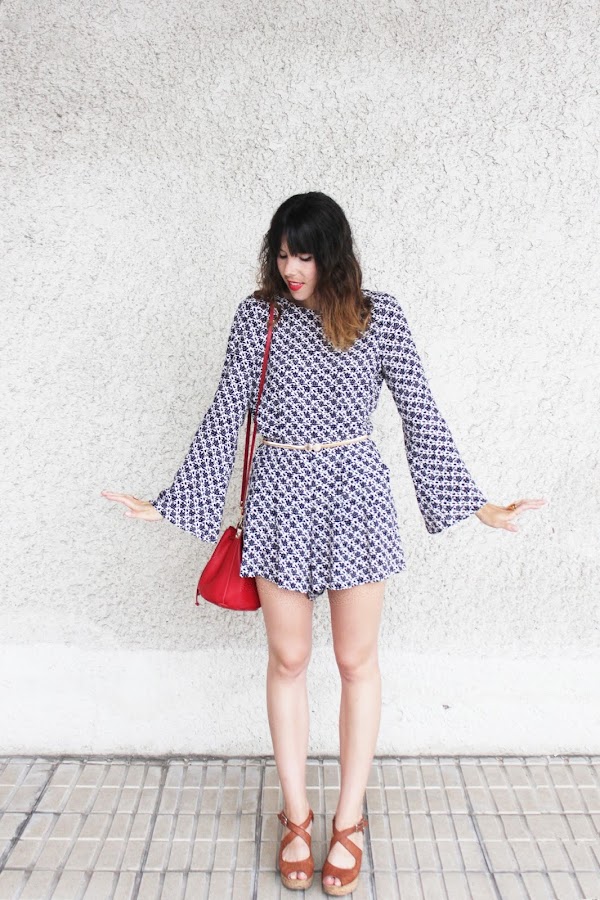 Los monos y los estampados son tendencias fundamentales en verano. A mi me hacen sentir bien y muy agusto. Me enfundo en esta prenda tanto para ir a trabajar, como para tomar algo con unos amigos o incluso en una cena informal. La considero muy fresquita, un must have y muy cómoda, bueno hasta que llega el momento de ir al baño y casi desnudarte para hacer pis. Este en concreto lo adquirí esta semana en Zara, lo encontré haciendo cola en el probador en uno de los raíles de ropa, y a pesar de que llevaba un buen puñado de modelitos sólo me quedé con este. Por supuesto mi bombonera roja de encuire no podía fallar en este look, es una monada.