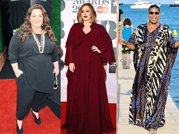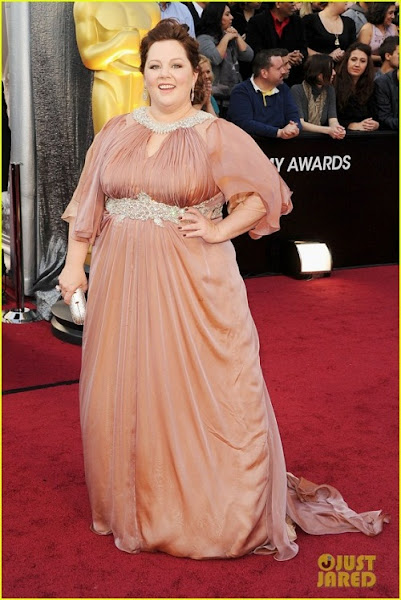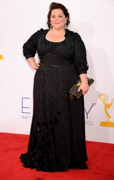 Aquí tenemos a la famosa Melissa McCarthy luciendo dos hermosos vestidos de gala, sin duda fueron una buena elección, los dos vestidos con cortes similares cintura alta, suelto y largo ,este corte es ideal para las chicas gorditas pues disimula muy bien esa parte del cuerpo que la mayoría de las chicas gorditas desean ocultar que son sus famosos rollitos de la cintura y cadera. Otro detalle mas que les quiero resaltar sobre estos dos vestidos si se fijan el color negro disimula mucho mejor el volumen del cuerpo, el negro es siempre muy recomendado para disimular el sobrepeso.
