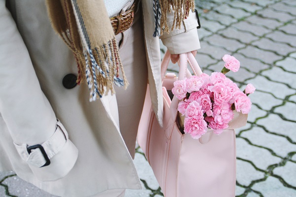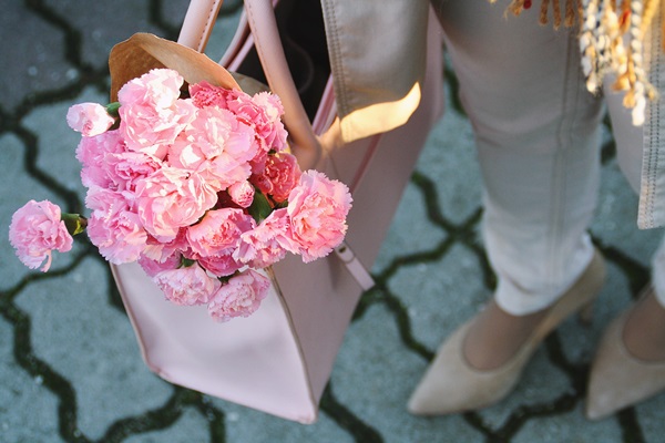 Este año me propuse rendir un homenaje al color del año con un outfit en colores rosas y tonos suaves como el blanco y el beige. El resultado ha sido lo más adorable que he vestido. Y, además, he decidido que, siempre que pueda, llevaré flores en el bolso. Allá por donde iba, mis clavelinas rosas atraían la mirada de todos. No solo quedan lindísimas, sino que dan un toque chic que alegra la vista a cualquiera.