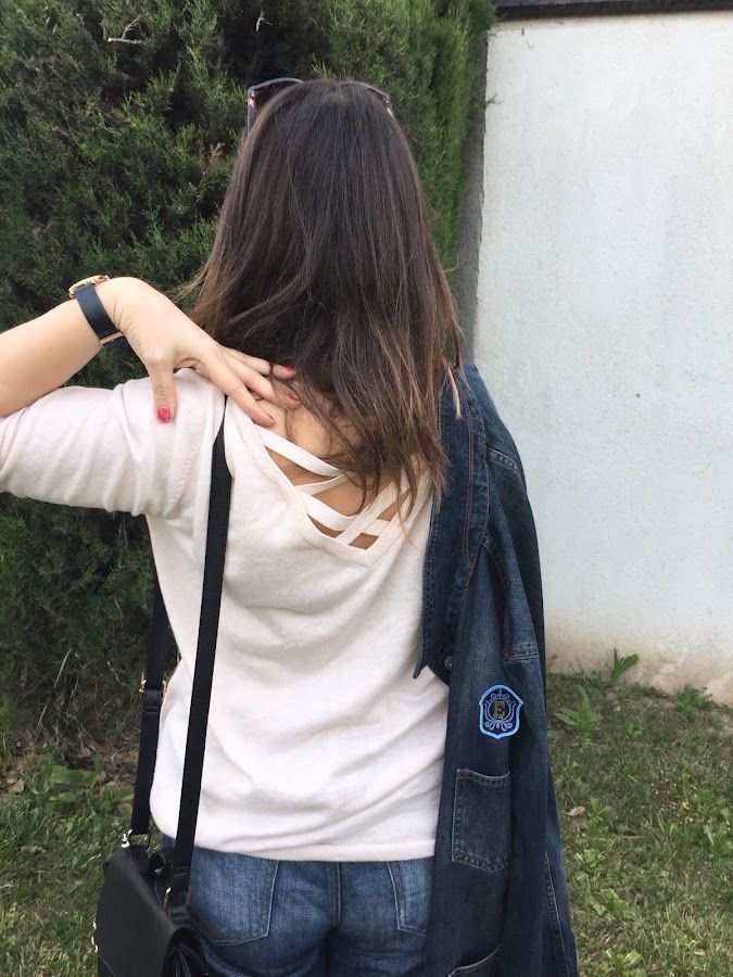 Hoy os traigo un post look, una de las prendas imprescindibles de armario es un buen jersey de cashmere, éste que llevo hoy en el look es del año pasado de Mango y está como el primer día, el color en rosa quarz, su tejido cashmere y seda y el detalle de la espalda me enamoraron por completo, ideal para las temperaturas primaverales, en ésta ocasión lo combiné con un pantalón denim crop y sobre camisa tejana con parches como complementos mis preciosos zapatos estilo mocasin en rosa y bolso pequeño negro, un look ideal para diario, espero que os guste ;)