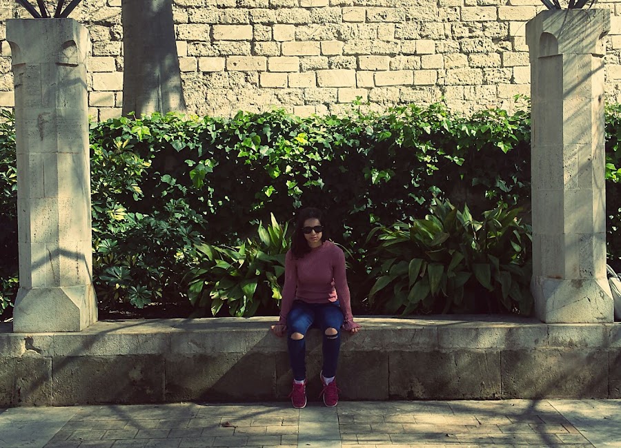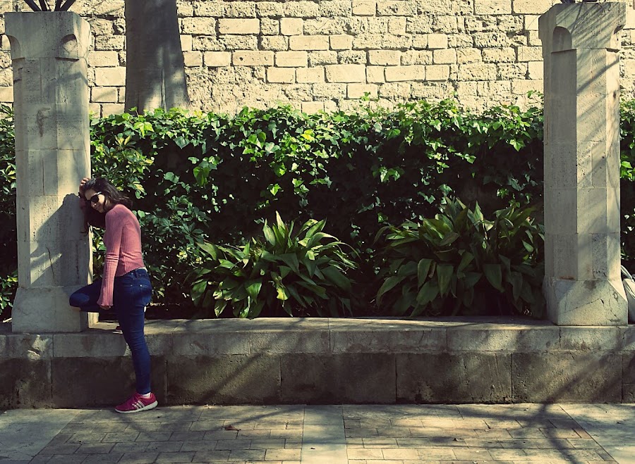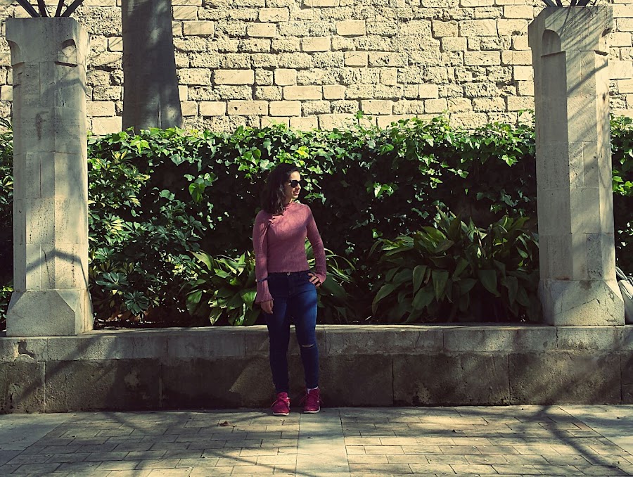 Saturday was more relax and we stay in the city of Palma, and we visited the cathedral and surrounding, where we took the photos of the look. The look is romantic and sweet. For it, I only wore a pink basic shirt with wide sleeves (in tendency now), that I combine with jeans and trainers.