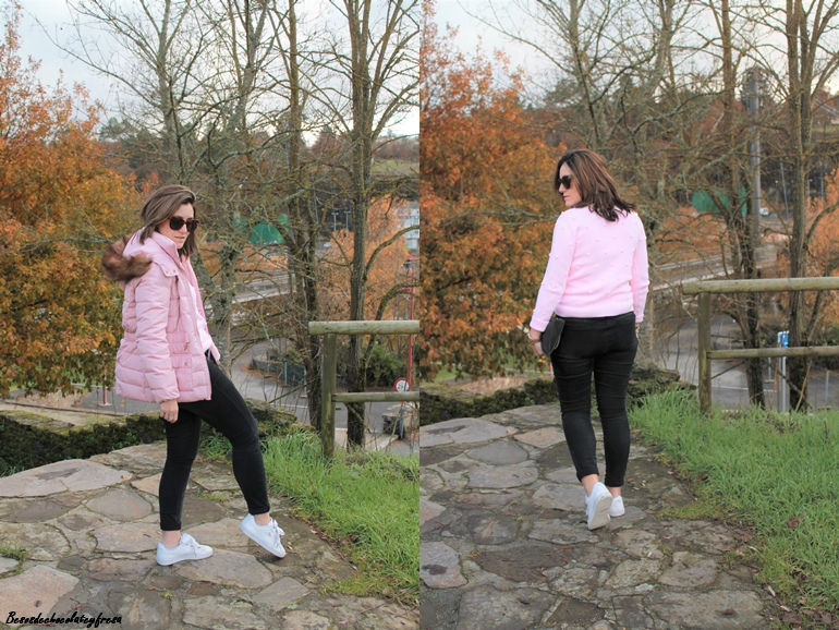 Un jersey rosa nunca pasa desapercibido, sea en la tonalidad que sea, desde el más clarito, bautizado como rosa empolvado o rosa pastel, hasta el más intenso, como el fucsia o frambuesa. Como si de un algodón de azúcar se tratase o el color de los flamencos, hoy traigo este color en el look, en el sweater y en el plumífero.