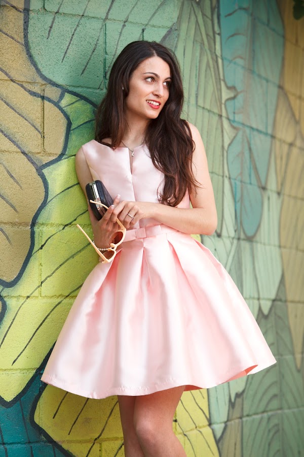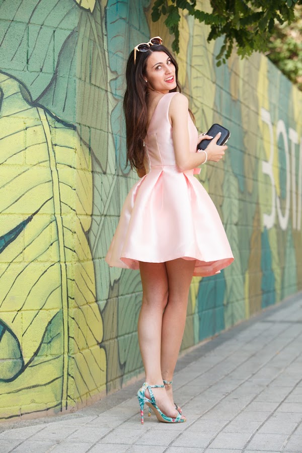 Hoy os dejo un look de fiesta con un precioso, elegante y fino vestido rosa pastel! Ideal para alguna ocasión especial! Me encanta el corte con el cuello en barca y el pequeño escote en V. Además de los detallitos como el lazo de la cintura y el amplio vuelo de la falda con los pliegues. ¿Qué os parece?