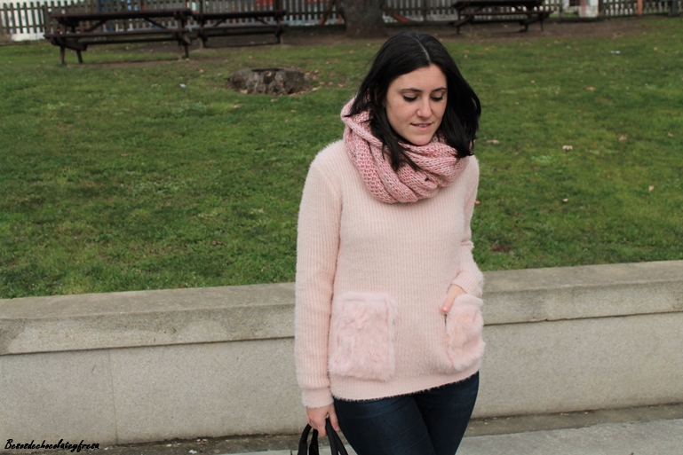 Today I show you a look that you already saw by my social networks that I put this weekend for a quiet Sabbath day. I wear my new sweater in powdered pink that I brought the Magi with plush pockets that make it different and original.