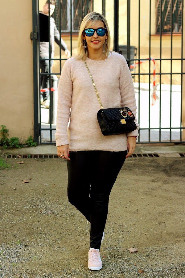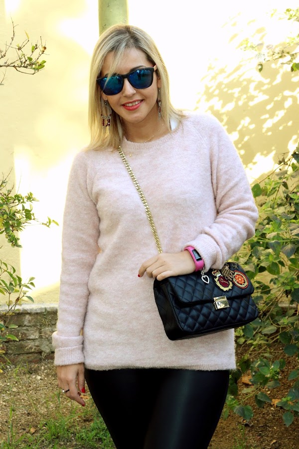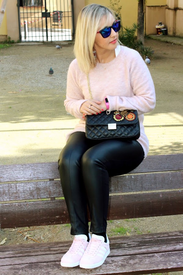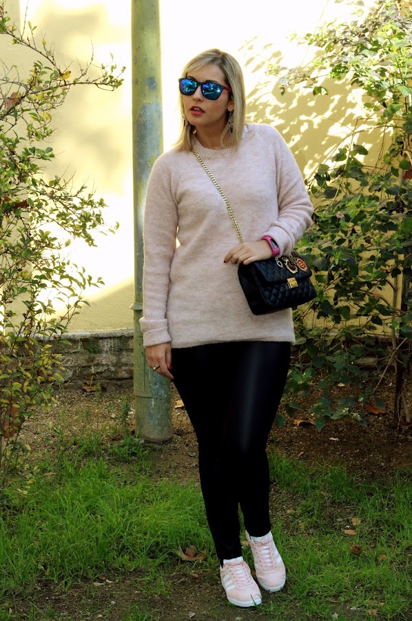 Today I show you a casual outfit but at the same time very sweet. Last Friday I received my new pink Gazelle, which I showed you in social networks, and of course, I wanted to wear it now. Then, I decided to wear it with this casual outfit that I show you. I mixed it with my new pink sweater of Stradivarius, which its the same color that my Gazelle, and a black leggings. To give a chic touch to the outfit, I put my new animal print coat of Dresslily and my new black bag with patches of Zara that I bought at very good price in Sales. A casual chic outfit that its perfect to be comfy and chic during the weekend.