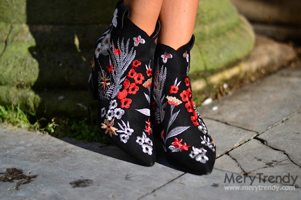Si recordáis, a finales de Noviembre os enseñaba por vez primera aquí mis botines tobilleros con estampado de flores y corte textil de Exè. Pues bien, como estoy tan contenta con ellos, hoy miércoles he decidido "empezar a vestirme por los pies".