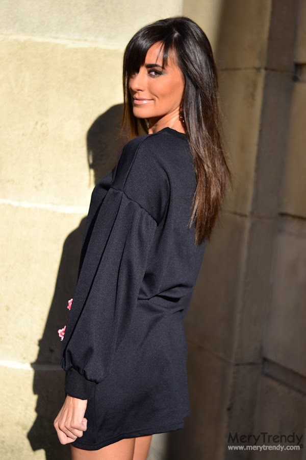 En concreto, este vestido tipo sudadera con mangas de farol, tan amoroso al tacto. ¿A que es una monada?