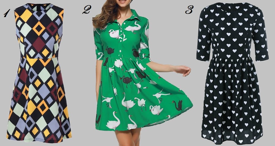 1- Vestido rombos AQUÍ, 2- Vestido cisnes AQUÍ, 3- Vestido corazones AQUÍ