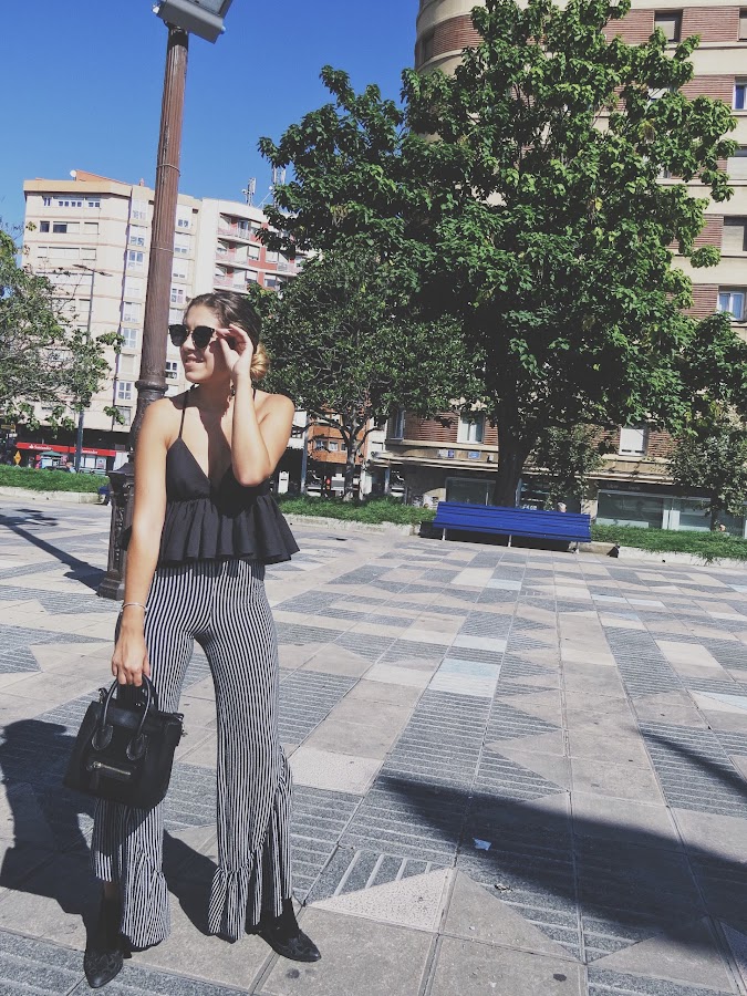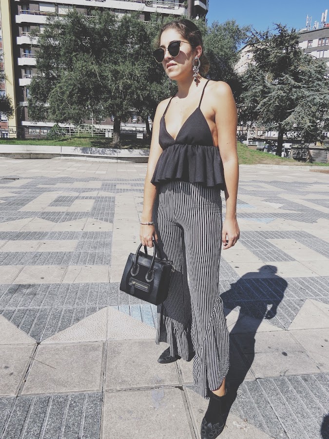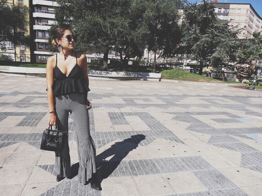 Que me gusta a mi un volante, no es nada nuevo y además este año están en un montón de prendas, incluso en los pantalones y esta tendencia no me puede gustar mas. Me gustan las prendas fluidas, con movimiento como este top y este pantalón que hacen un combo prefecto.