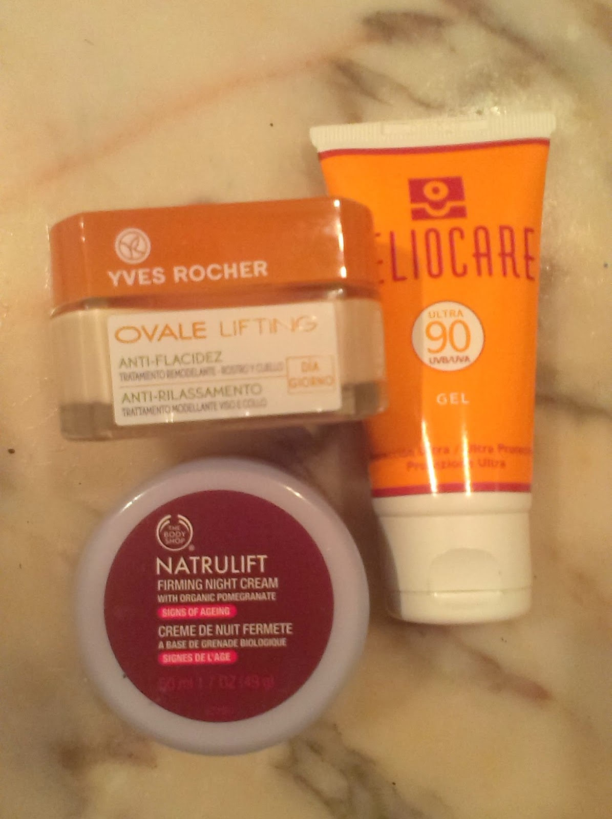 Para el rostro escogí para el tratamiento de día la misma línea de Yves Rocher. Personalmente no la veo adecuada para el verano. Demasiado untuosa para usarla por las mañanas, tarda en adsorberse y deja la piel brillante como si tuviera grasa pero no aporta realmente nada de grasa a la piel.Para la noche me lance a probar la Natrulift de Body Shop. Huele de maravilla, respecto a que reafirma la piel, nohe notado aún ningún efecto visible pero supongo que son tratamientos a largo plazo. Pero lo que más me a gustado es su textura y como se adsorbe y deja la piel. Al verlo uno piensa que sera muy untuosa pero luego se extiende muy bien y deja la piel sedosa y con una sensación muy agradable y fresca.