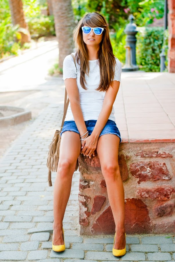 Hi to everybody! Today I share with you one of my favorite looks for summer! a simple t-shirt, shorts but the details make the difference, right? So I decided added my yellow shoes (I really love them) and my new favorite personalized sunglasses! Are from WOAXSUN web page, I"m very happy with them because are really comfy, beautiful, flamboyant...I should like have in more colors! I recommend you this page!