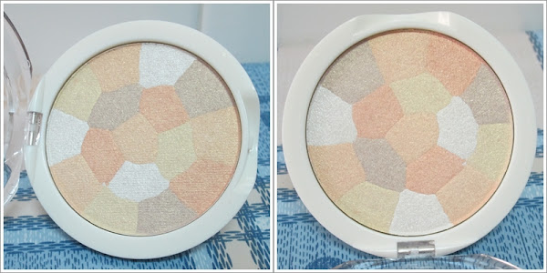 El producto, se presenta en un envase de plástico blanco, con tapa transparente, bastante sencillo. Contiene 8 gramos de cantidad, y como podéis ver, lo característico de él, es que está dividido en 5 tonos diferentes: blanco, naranja, dorado, salmón, marrón, etc.