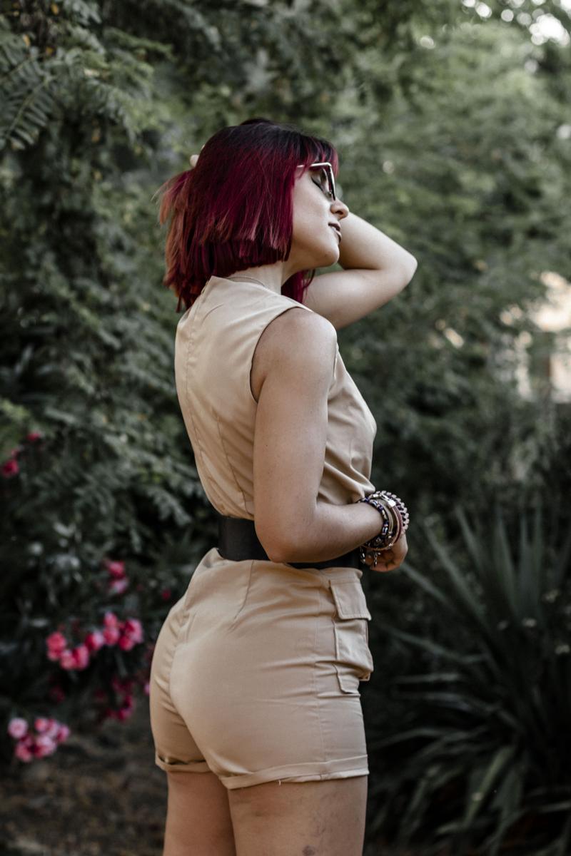 I leave you with a safari-style overalls by FEMME LUXE in a beige tone with V-neck and pockets on the front. In addition, it comes with the belt and is perfect! I love!