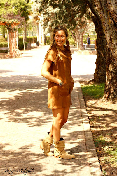 Menos mal que si digo que llevo un vestido de Serraje en color camel, acompañado de unas botas de media caña con un estilo Cowboy en color tostado ¡ lo tenemos todas claro! verdad ?? jijij