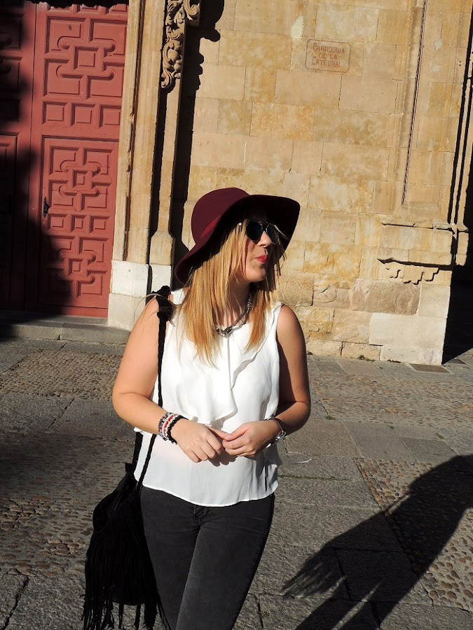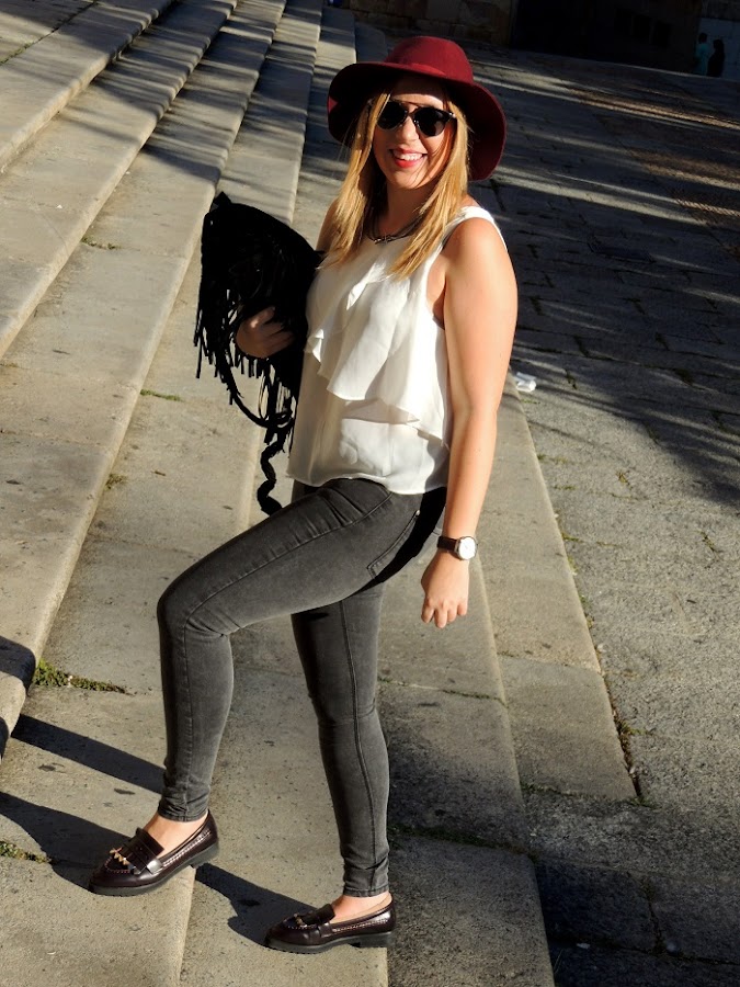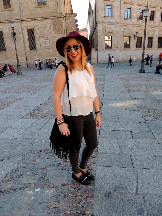 Salamanca que bonita eres!! (: Hacía mucho que no me perdía por sus calles y el pasado domingo fue el plan perfecto, hacía un día ideal, el verano daba sus últimos coletazos y sus calles estaban llenas de gente, buen rollo y esa magia que desprende cada uno de sus rincones. El look para mi perfecto para un plan domingero. Mis pitillos prefes, gris desgastado y muy ajustados, mis mocasines nuevos que para ser el primer día se portaron muy bien y no me hicieron ni cosquillas, las demás prendas ya son viejas conocidas por aquí que complementaron un outfit perfecto para un día de turismo charro. Espero os guste y...saludar a mis pinkis que saludan en alguna foto ;)