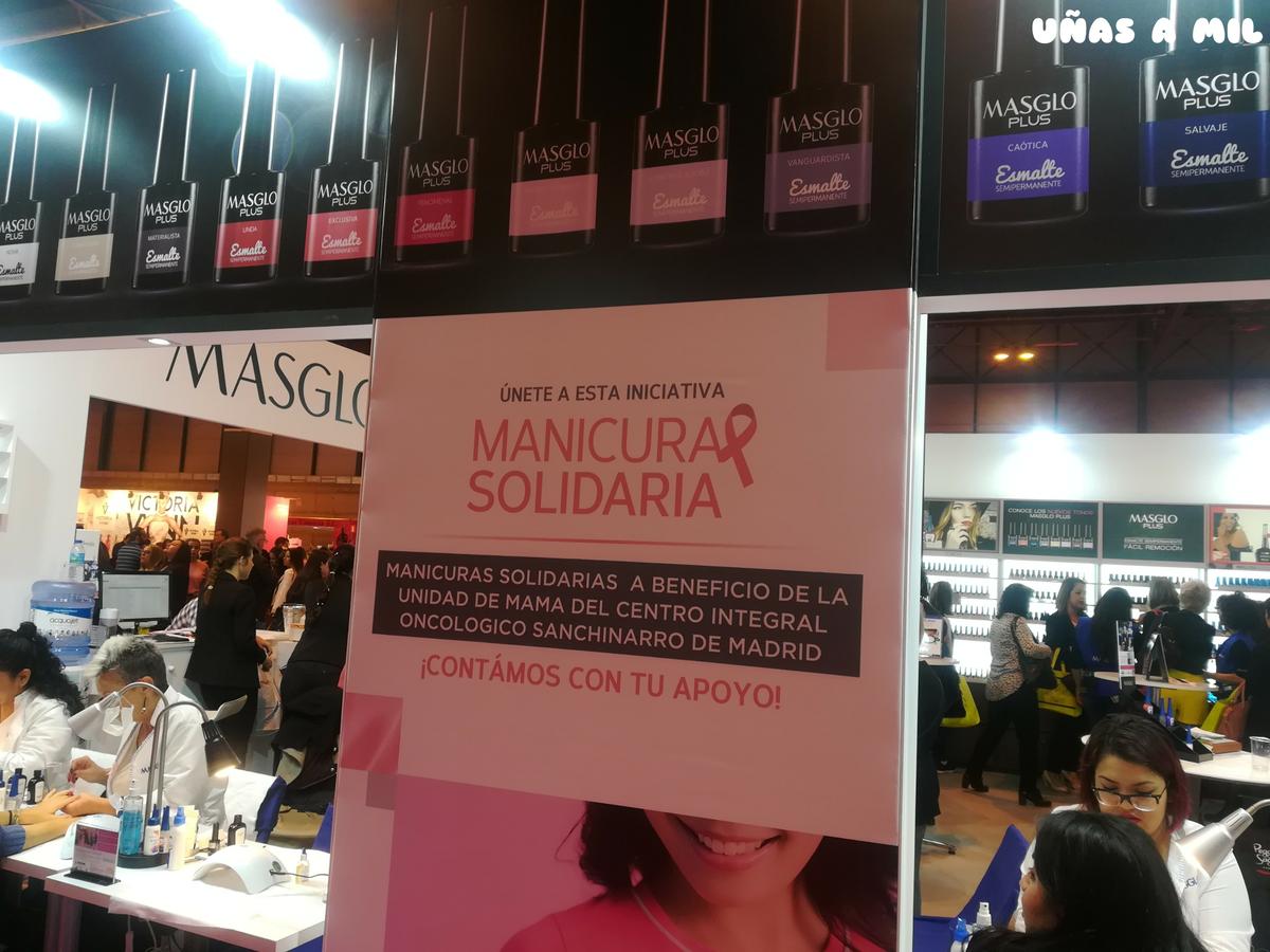 La súper iniciativa que lleva realizando varios años Masglo en su stand son las ”Manicuras Solidarias”, donde por un precio a partir de 15 podías hacerte la manicura y los beneficios obtenidos irán destinados a la Unidad de Mama del centro Clara Campal en el Hospital de Sanchinarro.