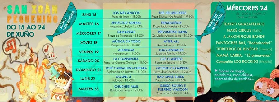 Cada vez hay más actividades, tanto del San Xoán Pequeniño, que ya empezó, como los días previos al 24 de junio. Son 11 días de celebraciones por toda la ciudad. Este es el programa: