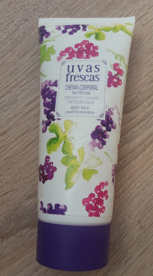 Esta crema de cosmética ecológica de Uvas Frescas me vino en una cajita Nonabox y me dio una alegría tremenda recibirla ya que tenía muchas ganas de probar la marca y ha sido una maravilla esta crema corporal. Muy muy nutritiva, con un olor suave a plantas, lo justo de espesa para nutrir mucho pero sin sensación grasa ni pegajosa en la piel. La usaba siempre después de la ducha y mi piel lo ha agradecido mucho, la verdad, que últimamente la tengo bastante seca.