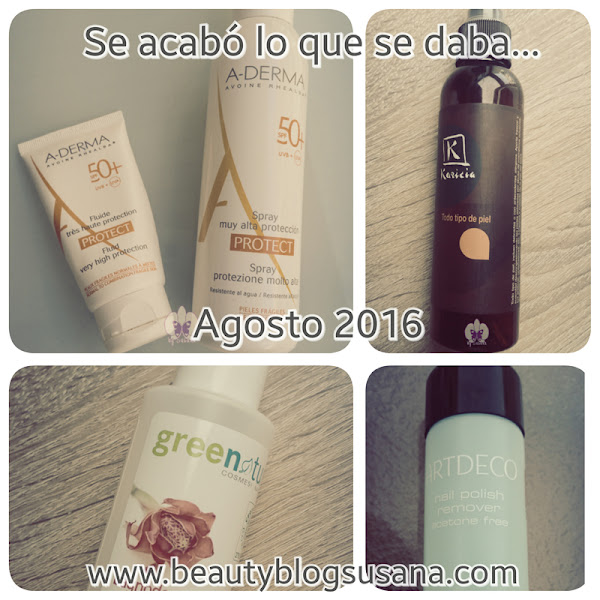 En el pasado post de la sección Se acabó lo que se daba... os hablaba de los productos que había terminado en el mes de Julio y hoy, como no podía ser de otra forma, vengo a mostraros los productos cosméticos que he acabado en este mes de Agosto. Para mi es un gustazo ir acabando productos porque eso quiere decir que los estoy usando, además algunos me duran mucho tiempo y cuando se acaban ya lo estoy deseando, así que, sin más, voy a contaros que productos he acabado este mes y que me han parecido tras su uso.¡Son estos!
