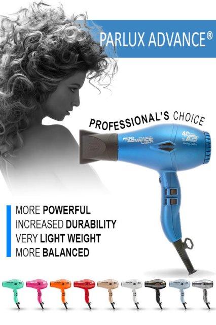 Parlux Advance utiliza tecnología Ionic & ceramic en la que las gotas de agua se transforman en mocromoléculas que el cabello absorbe haciendo que mantenga su humedad natural sin evaporarse y que así el cabello quede más suave, sano y brillante. Su efecto cerámico y la carga de iones negativos, hace que el calor salga directamente desde el interior sin perder calidad ni alterar su estructura.