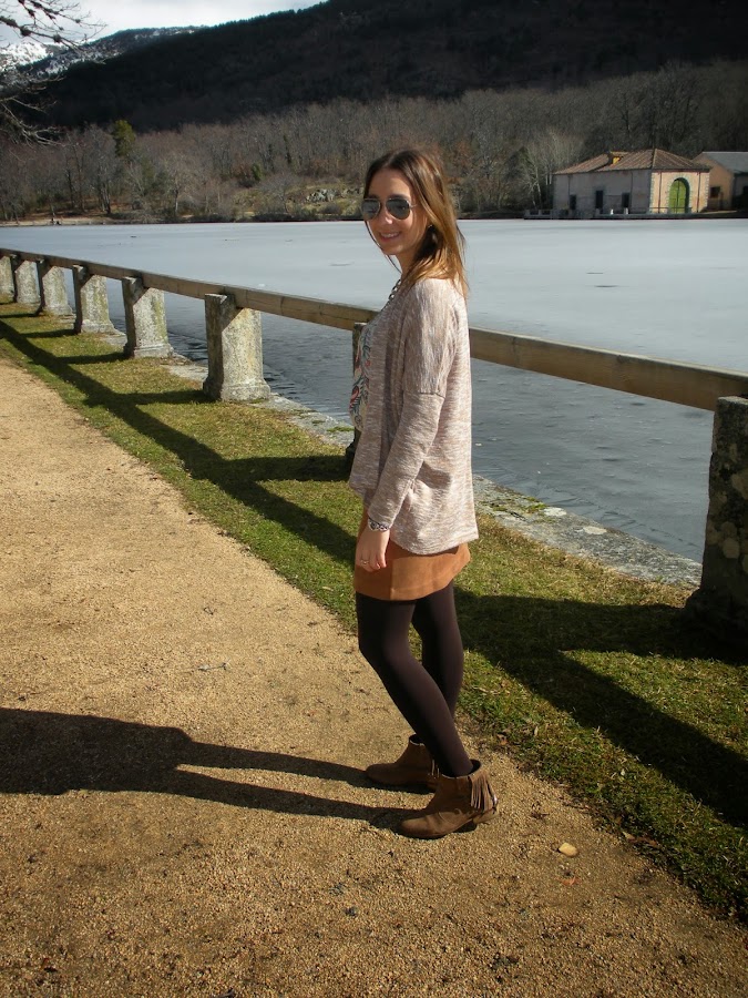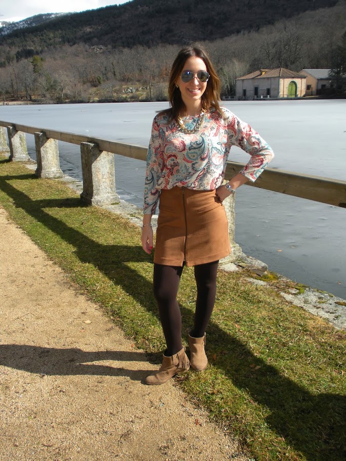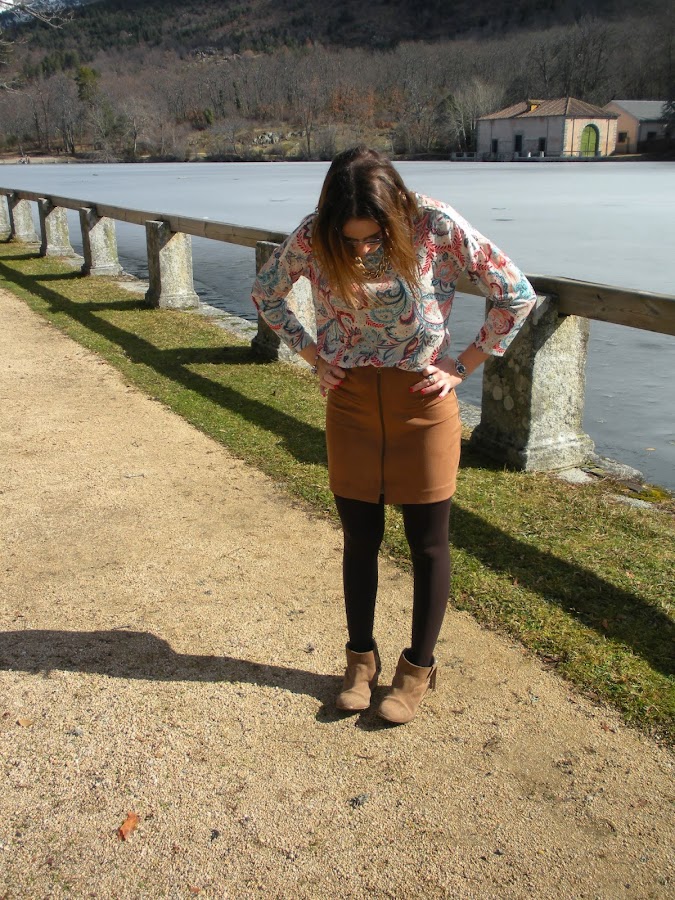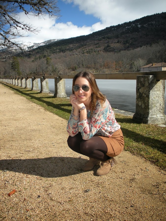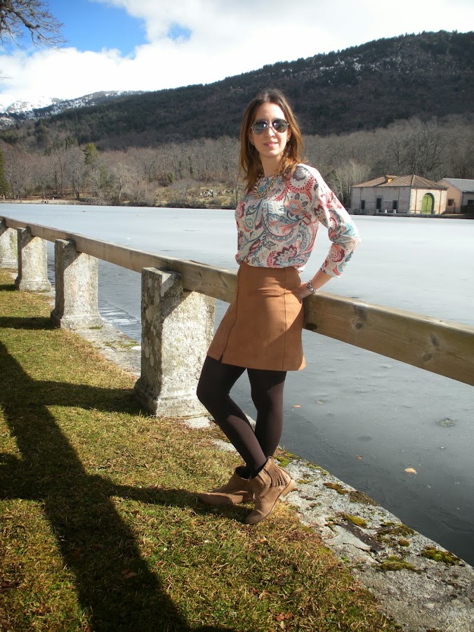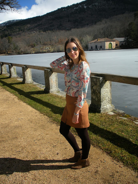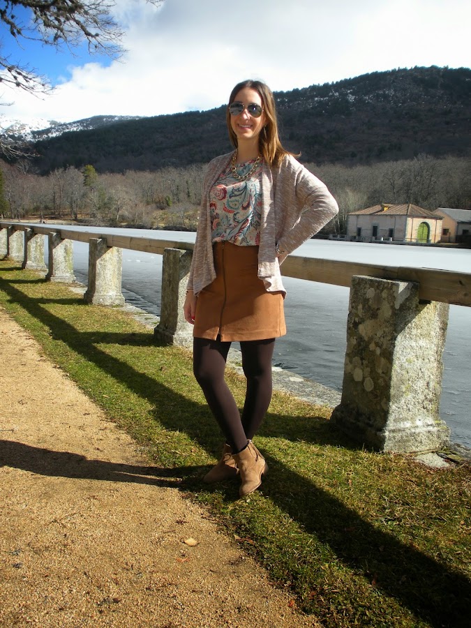 Hoy os enseño el look que llevé el domingo para visitar el Palacio de la Granja de San Ildefonso, en Segovia. Como véis, estreno la falda de antelina y la camiseta estampada de lefties. Me parece una compra perfecta. La biker azul bebé que os enseñé también me la cogí pero todavía no la he estrenado porque sigue haciendo mucho frío.