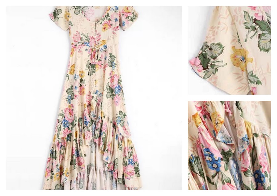 3. Maxi Vestido Floral Con Volantes Con Cuello En U Con Faldas Altas Bajas - Floral, tiene un largo de 144 cms para la talla S, un largo de 145 cms para la talla M y un largo de 146 cms para la talla L. Confeccionado en algodón. Les dejo el enlace directo