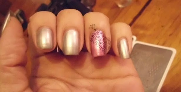 Suelo dejar los esmaltes que ya están demasiado espesos para las estampaciones porque los sellos los cogen mejor, los esmaltes más fluidos no valen para eso. Por eso me fue un poco dificil cogerle el truquillo a este sello blanco, porque este sello tiene una textura diferente y coge mejor los esmaltes no tan espesos y más fluidos. El caso es que tienes que encontrar siempre el esmalte que le vaya bien a tu tampón estampador.