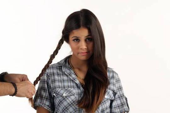 Hazte dos trenzas y déjalo secar. Puedes hacerlo con el secador.