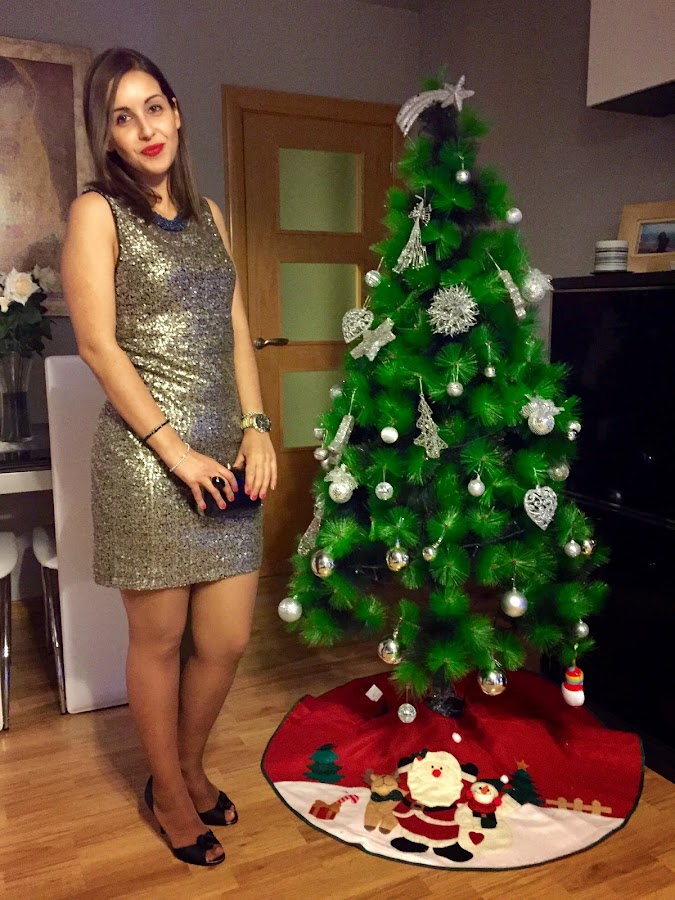 Good night sweeties! My Christmas Holidays have finished, but we have a lot of things to celebrate with our family and friends like New Year Eve and New Year Day. Today I show you a perfect outfit for New Year Eve. In the outfit of the day, I wear gold sequin dress with black shoes and hand bag. This year I wanted a sequin dress to celebrate the new year eve, and when I saw this one of Pull and Bear, I know that I had found my perfect dress.
