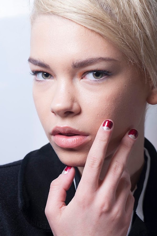 Clements Ribeiro Fall/Winter 2013-2014 red and silver glittery nails