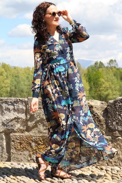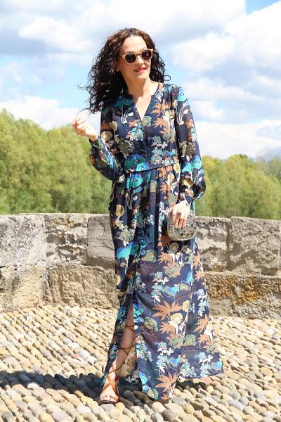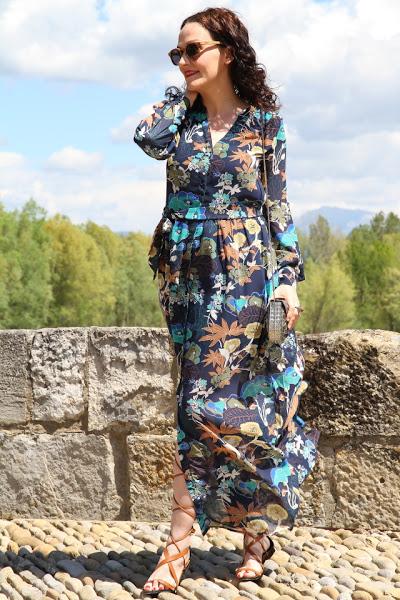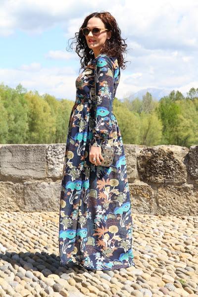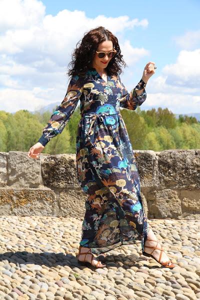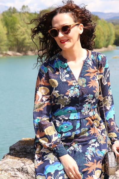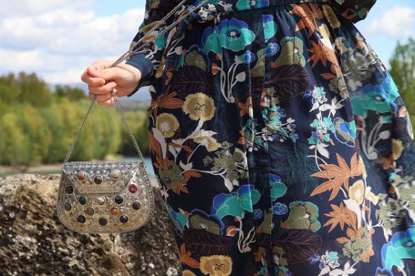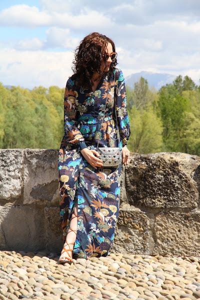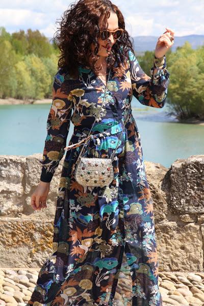 Lo mío con este vestido setentero fue un auténtico flechazo, nada más entrar en la tienda mis ojos se fueron derechitos hacía él. Lo primero que me llamó la atención fue su vistoso estampado floral, pero cuando vi el corte boho que tiene me enamoré completamente de él. Las fotos de hoy son del día que lo estrené, el aire que hacía no acompañaba mucho para las fotos, como veis en mis pelos locos, pero en cambio creo que el vestido aun quedaba más bonito en movimiento. Le añadí un bolso metálico y sandalias romanas que hacen muy buen combo con el vestido por el toque boho chic que le aportan.