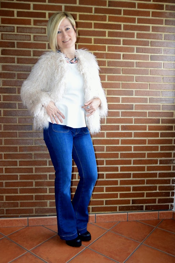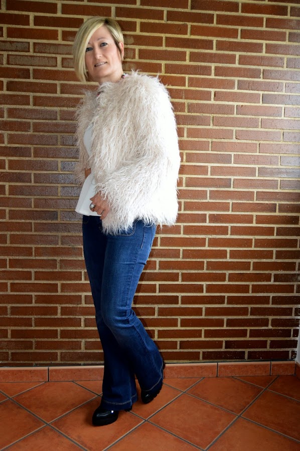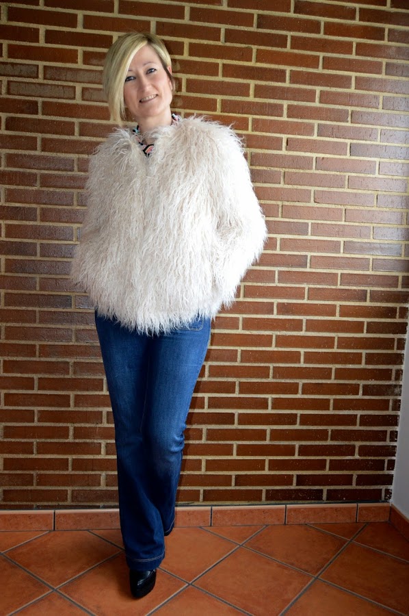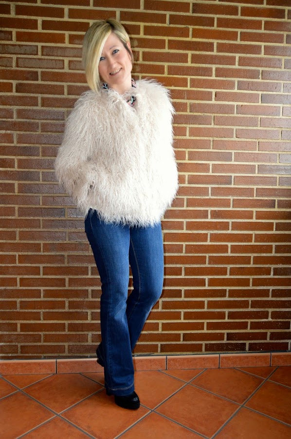 Ya lo sé, ya lo sé, tengo verdadero vicio por los abrigos. Veo un abrigo de pelo y se me van los ojos y las manos. Ya os dije que aprovecho las rebajas, sobre todo, para abrigos y calzado. Un nuevo habitante de mi armario, es este abrigo de pelito de Zara, le veréis por aquí más veces. Esta vez le he dado un rollo años setenta, estilo que me gusta bastante.