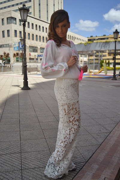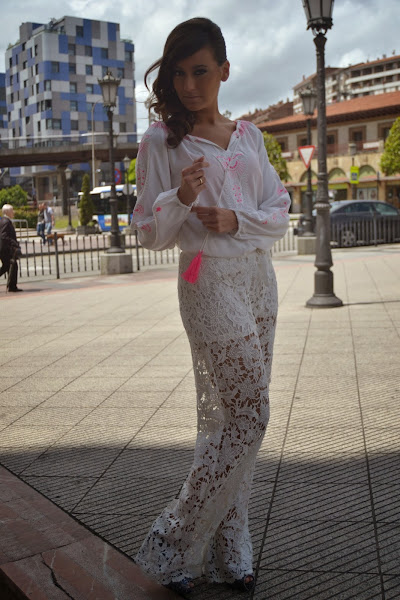 Más info sobre esta falda y esta camiseta pinchando aquí y aquí. Y qué me decís de este otro blanco sobre blanco, bonito ¿verdad? Y es que la tendencia total white viene pisando fuerte.