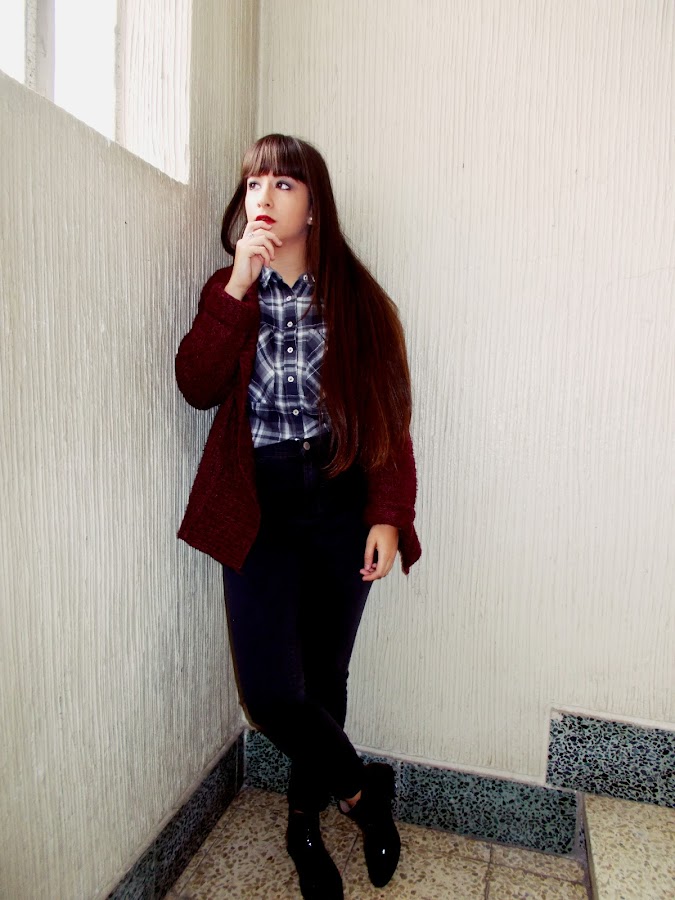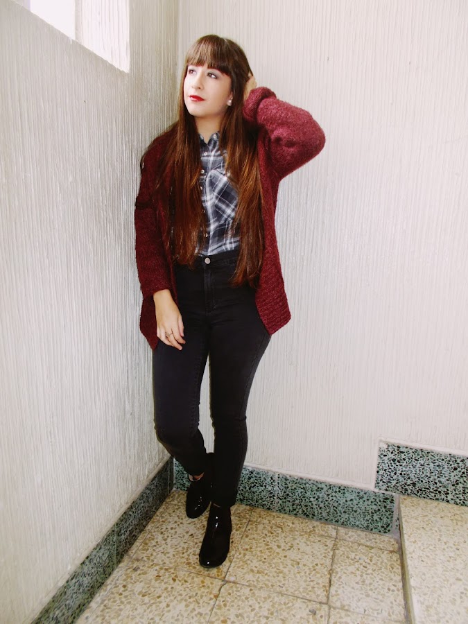El outfit que os enseño hoy es ideal para este tiempo tan otoñal y en él combino un color muy de tendencia en esta época: el Granate, el cual hace presencia en botines y cardigan. Lo combino con diferentes grises (de ahí el título, un poco peliculero) ya que creo que es un color muy acertado. Por último, detalles como reloj, anillo y pendientes en plata.
