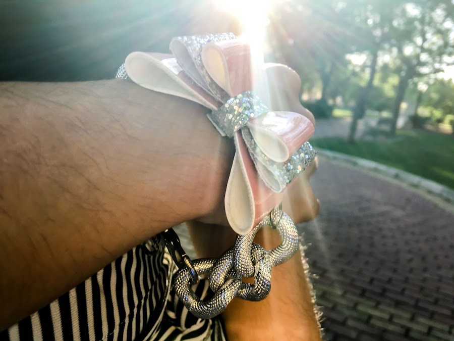 I have combined with a very original black body with a print "shake it" blank, my platform sandals and as complements my watch stripes with a touch pink of Daniel Wellington and a super cool bracelet pink bow.