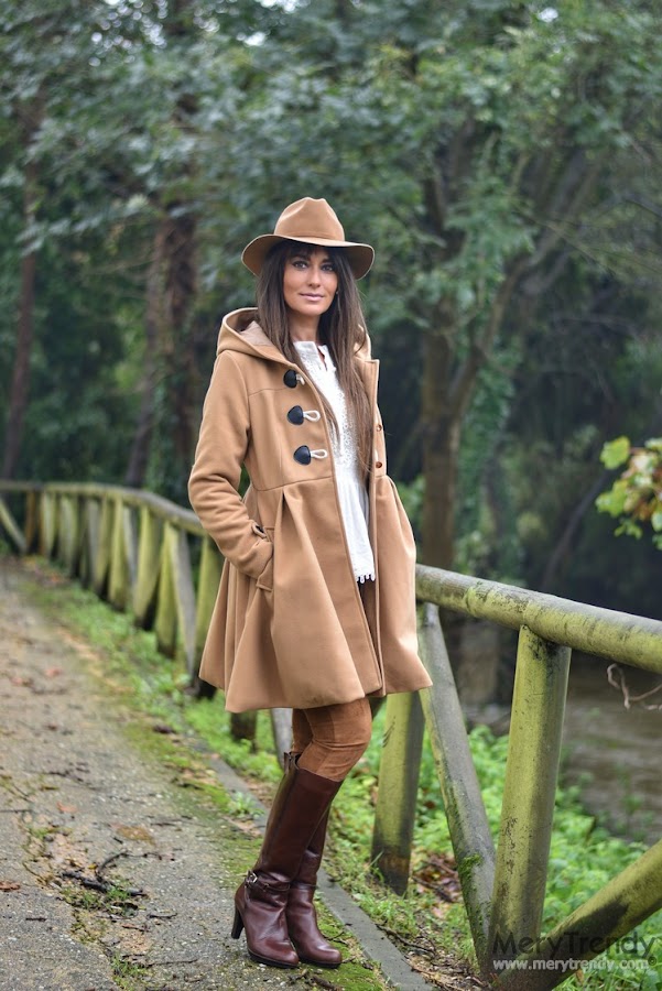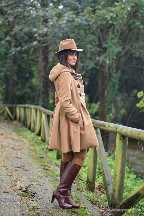 De un lado, una clásica trenca con capucha que se abrocha pasando unas piezas alargadas por unas presillas; muy cuqui,