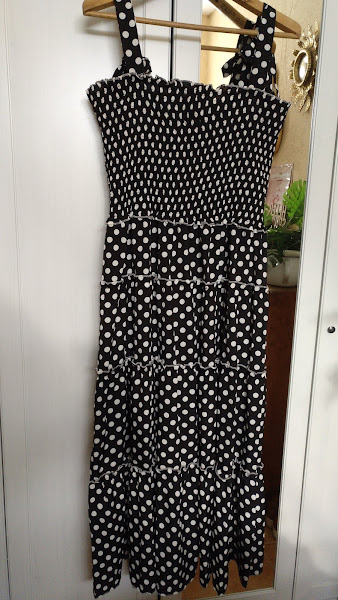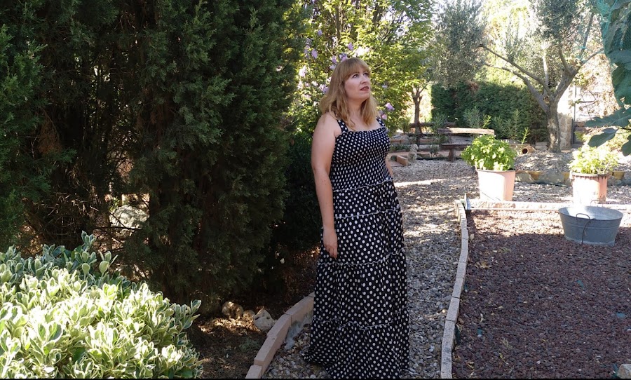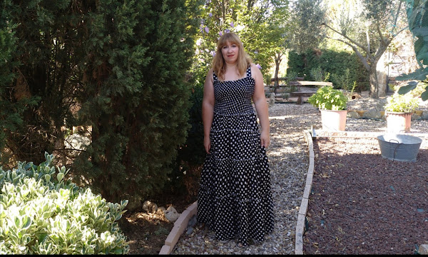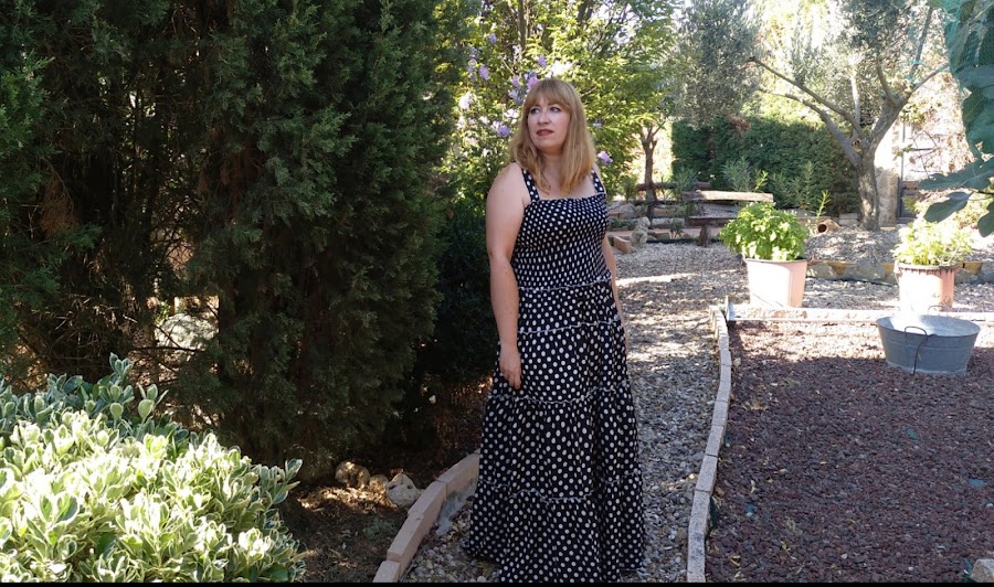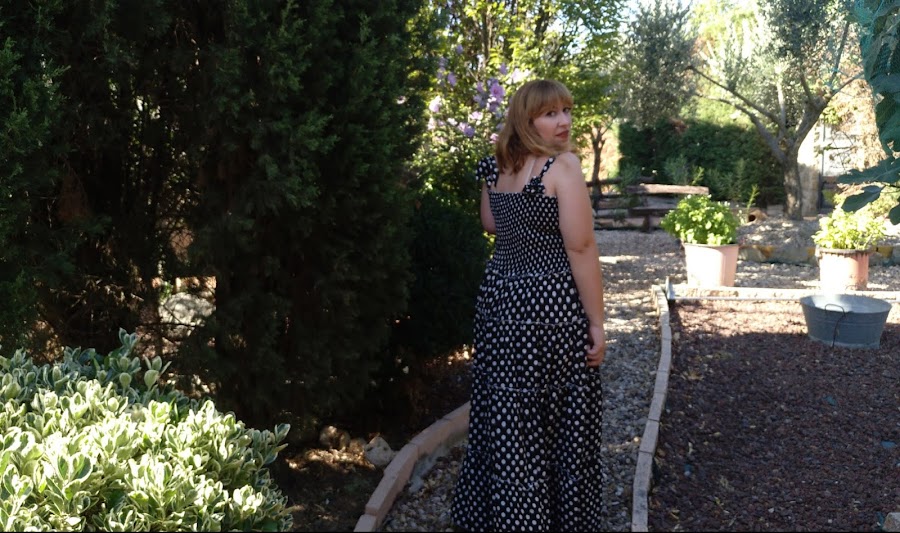 Siempre viene bien tener en el armario este tipo de vestidos largos, con estampado de lunares y tirantes, son fresquitos y de lo más cómodos. La parte de arriba consta de: top de malla de abeja y la parte de la falda se encuentra plisada horizontalmente, con gran longitud. Si os gusta lo podéis encontrar AQUÍ
