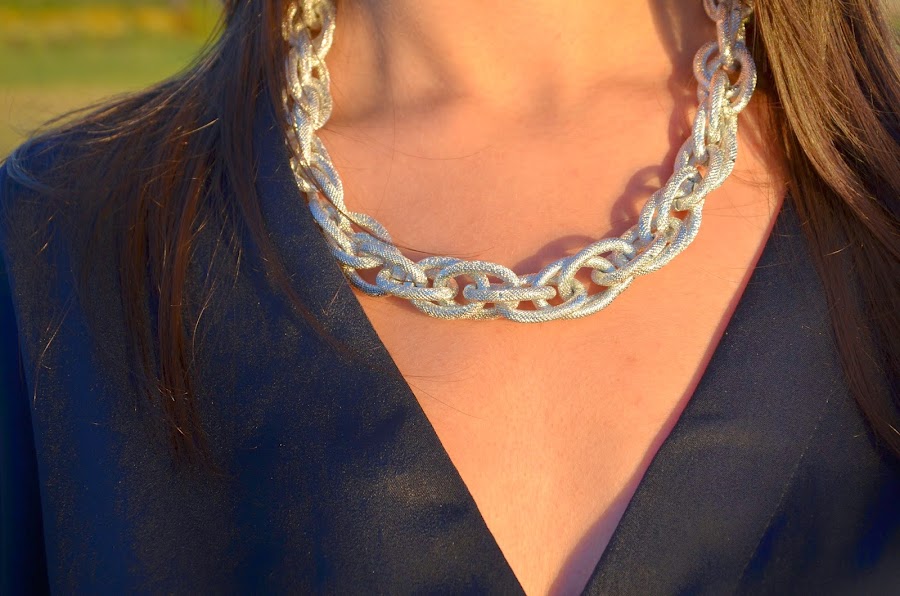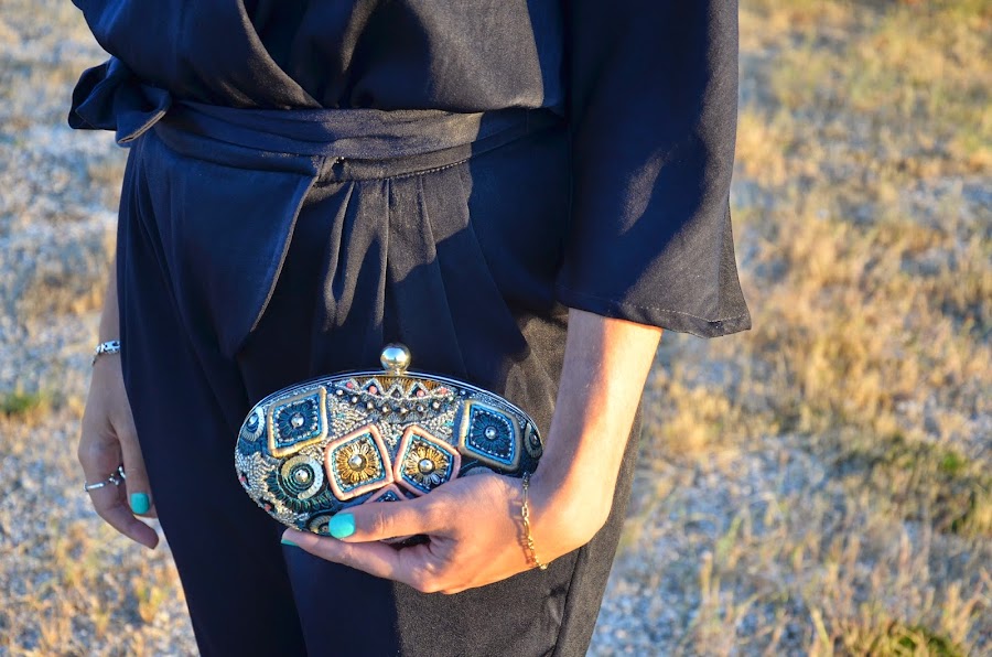Como complementos elegí este colorido clutch de Sfera y un collar de la tienda online Maraya Moda que me pareció ideal para completar este look.