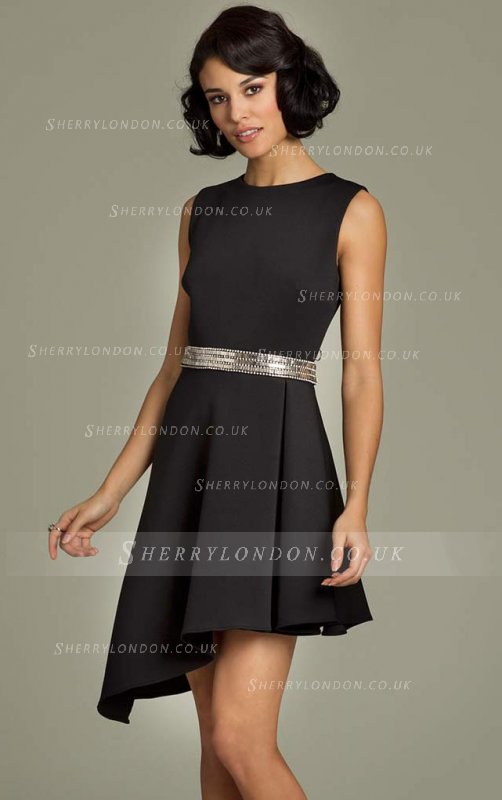 C. Vestido negro corto asimétrico/AQUÍ.