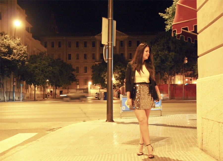 Good morning! I weared this look when I went to dinner with my boyfriend, it"s a basic look but always is ok, white, black and a shiny touch. We took the photos abroad and there wasn"t a lot of light but I like the result. The skirt and the top were a present of my mother. I love these sandals but little use, I don"t usually wear this type of heel and I feel a bit awkward with them haha. Hope you like it!