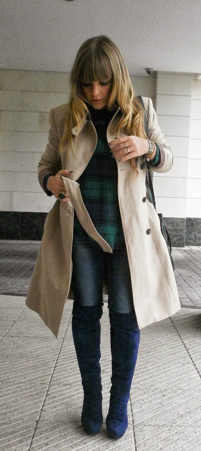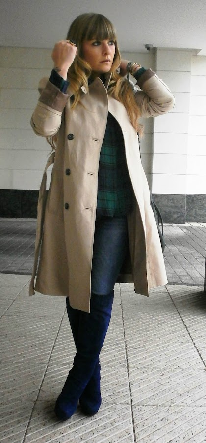 El resto muy sencillo, denim, botas altas y un trench clásico, imprescindible para estos días de lluvia.